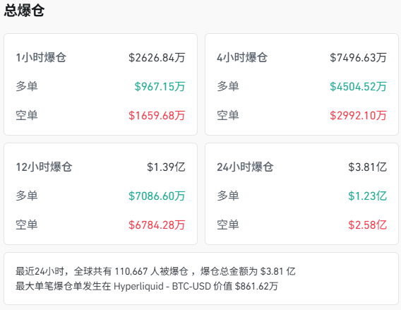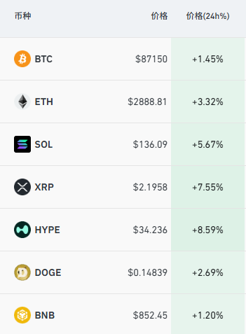 11月25日,比特币一度向上突破88000美元,随后涨幅略有收窄。截至18:00,过去24小时涨1.45%;以太坊反弹超3%,SOL涨超5%,XRP也涨近8%。全市场超11万人爆仓,爆仓总金额为3.66亿美元。
