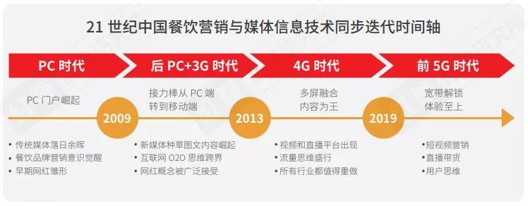 这一阶段4G技术得到广泛推广应用,一方面随着网红成为非常普遍的社会现象,其内涵也从稍有负面转变成中性词。图文内容依然广泛传播,视频创作和直播平台的出现,给餐饮营销带来了新的渠道和工具,短视频营销成为餐饮品牌导流的新模式。