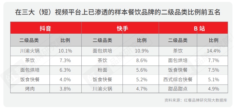 抖音上,川渝火锅渗透率最高,正如抖音的兼容并包、简短刺激;快手上,面包烘焙的渗透率最高,就像快手的家族粘性、温情绵长;B站上,茶饮的渗透率最高,好比B站的青春活力、甜中有香。