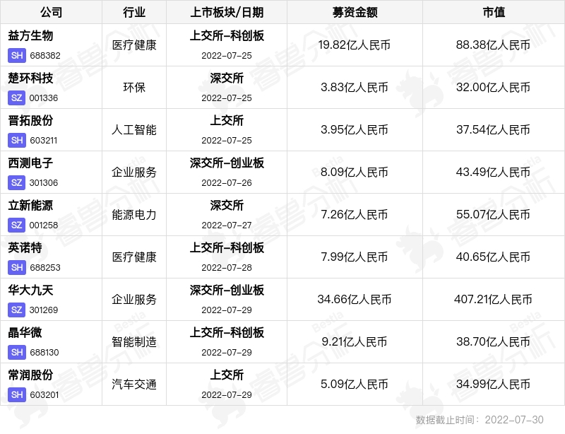 本周重点监测到国内9家公司IPO,分别于A股主板、科创板与创业板上市,最新市值最高为「华大九天」407.31亿人民币。